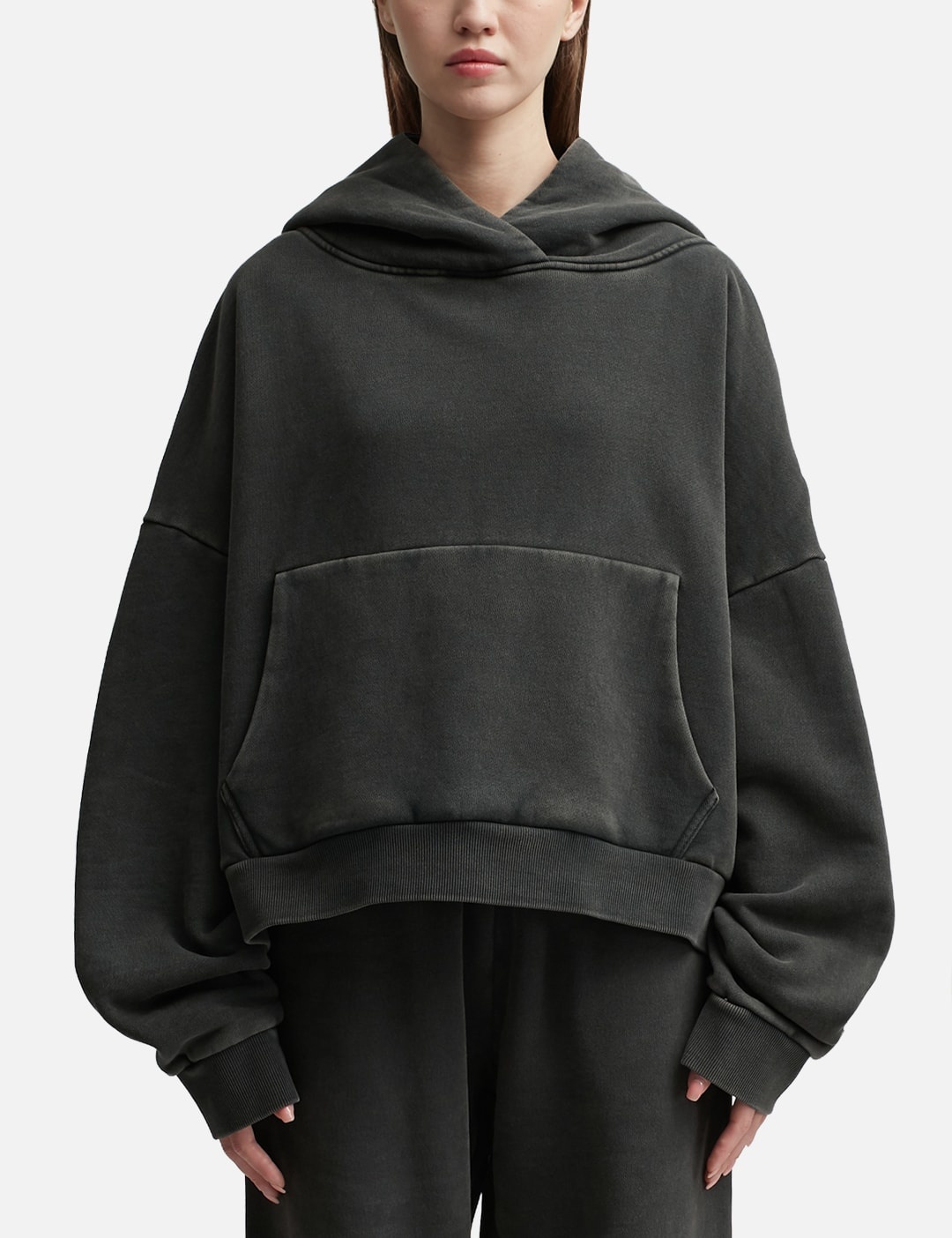 - Entire Studios - Heavy Hood Hoodie - Enzyme washed organic cotton exterior - Vintage finish - Pouch pocket - Ribbed trims - Fleece lining - Colors will vary for pieces in washed black due to the heavy wash process - Color: Washed Black - Material: 100% Organic Cotton - See more Hoodies and Clothing SIZING - Model wears size S - Model measures: Height 175cm, Chest 33”/83.8cm, Waist 23”/58.4cm,Hip 34”86.4cm