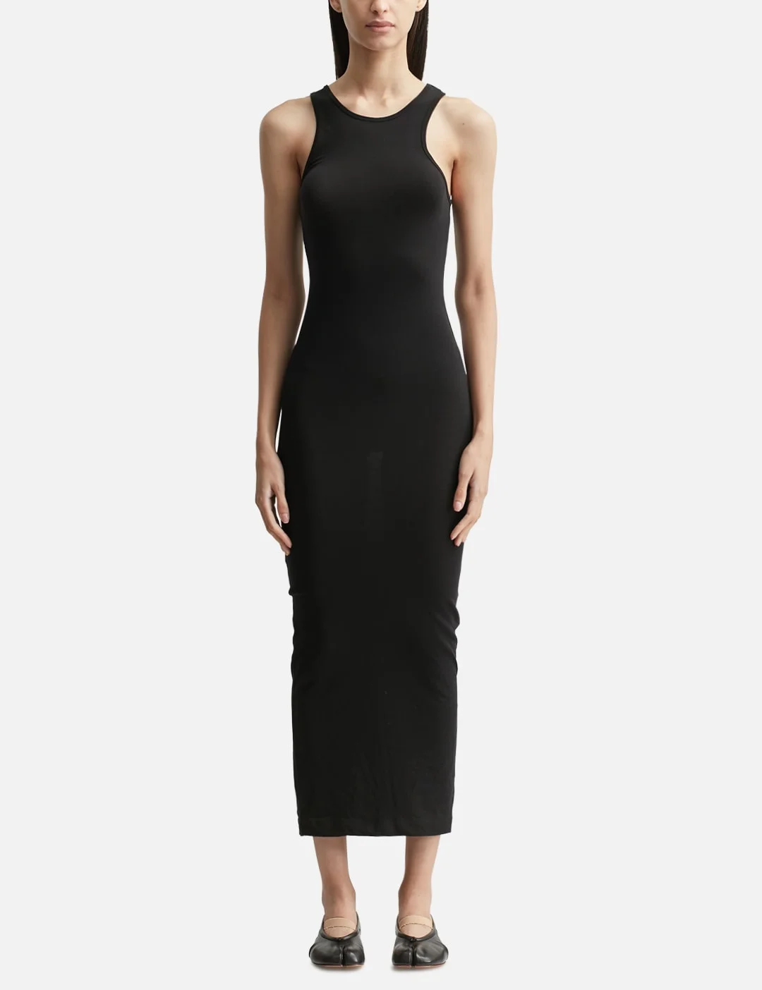 - Entire Studios - Midi Muscle Tank - Made of 115gsm sheer cotton jersey - Form-fitting style - Round neck - Sleeveless - Maxi length - Color: Black - Material: 94% Cotton, 6% Elastane - See more Dresses and Clothing - Model wearing size XS - Model measures: Height 179cm, Chest 32’’/ 81.3cm, Waist 24.5”’/62cm, Hip 34.5’’/88cm - Vendor Code: UNW-25-6013-BL