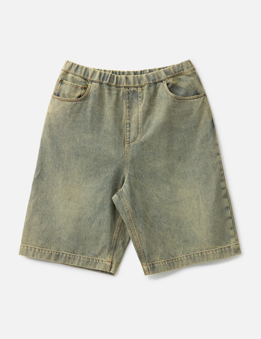 - Entire Studios - Spar Shorts Surface Wave - Made of cotton denim - Dirty spray - Baggy fit - Elasticated waistband with drawstring - Two side pockets - Two back patch pocket with snap buttons - Branded hardware details - Color: Surface Wave - Material: 100% Cotton - See more Shorts and Clothing - Model wears size M - Model measures: Height 186cm, Chest 34”/86cm, Waist 28”/71cm, Hip 36”/91cm - Vendor Code: ESU-S25-11008-SW