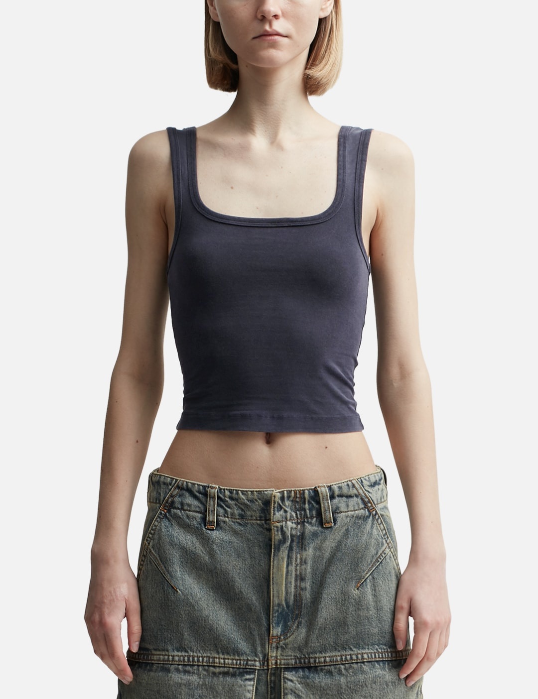 - Entire Studios - Square Neck Tank Top - Stretch cotton fabric - Slim fit - Square neckline - Due to the special wash process colors may slightly vary for each product - Color: Ink - Material: 90% Cotton, 10% Elastane - See more Vests and Clothing SIZING - Model wears size XS - Model measures: Height 179cm, Chest 32”/81cm, Waist 23’’/58.42cm, Hip 35’’/88.9cm