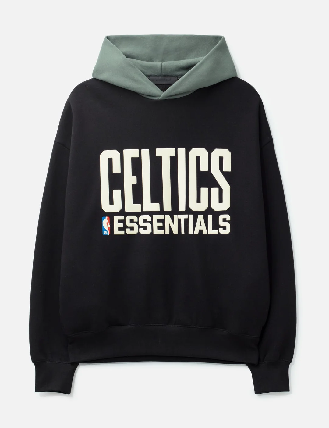 - Fear of God Essentials - Fear of God Essentials x NBA Celtics Sport Hoodie - Fear of God Essentials x NBA collaboration - Relaxed, cropped fit - Made of cotton and polyester fleece - Contrasted, fixed hood - Elastic binding at cuff and hem - Celtics essentials logo on front - Side pockets - Fear of God label - Boston logo at the back - Color: Black/Green - Material: 80% Cotton, 20% Polyester Fleece - See more Hoodies and Clothing - Model wears size M - Model measures: Height 186cm, Chest 34”/86cm, Waist 28”/71cm, Hip 36”/91cm - Vendor Code: 192NB256407F