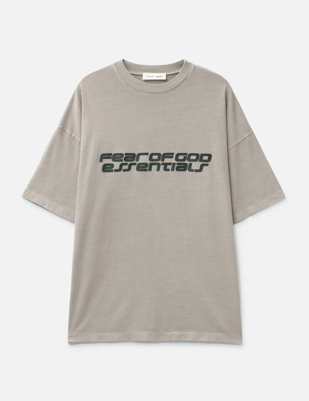 - Fear of God Essentials - Fear of God Essentials 90s T-Shirt - Oversized fit - Made of cotton jersey - Ribbed collar - Dropped shoulders - Short sleeves - Matte HD print of Fear of God essentials logo on front - "26" graphic at the back - Rubberized brand label at back collar - Color: Smoke Grey - Material: 100% Cotton - See more SS T-Shirts, T-Shirts and Clothing - Model wears size M - Model measures: Height 186cm, Chest 34”/86cm, Waist 28”/71cm, Hip 36”/91cm - Vendor Code: 125HO254471F