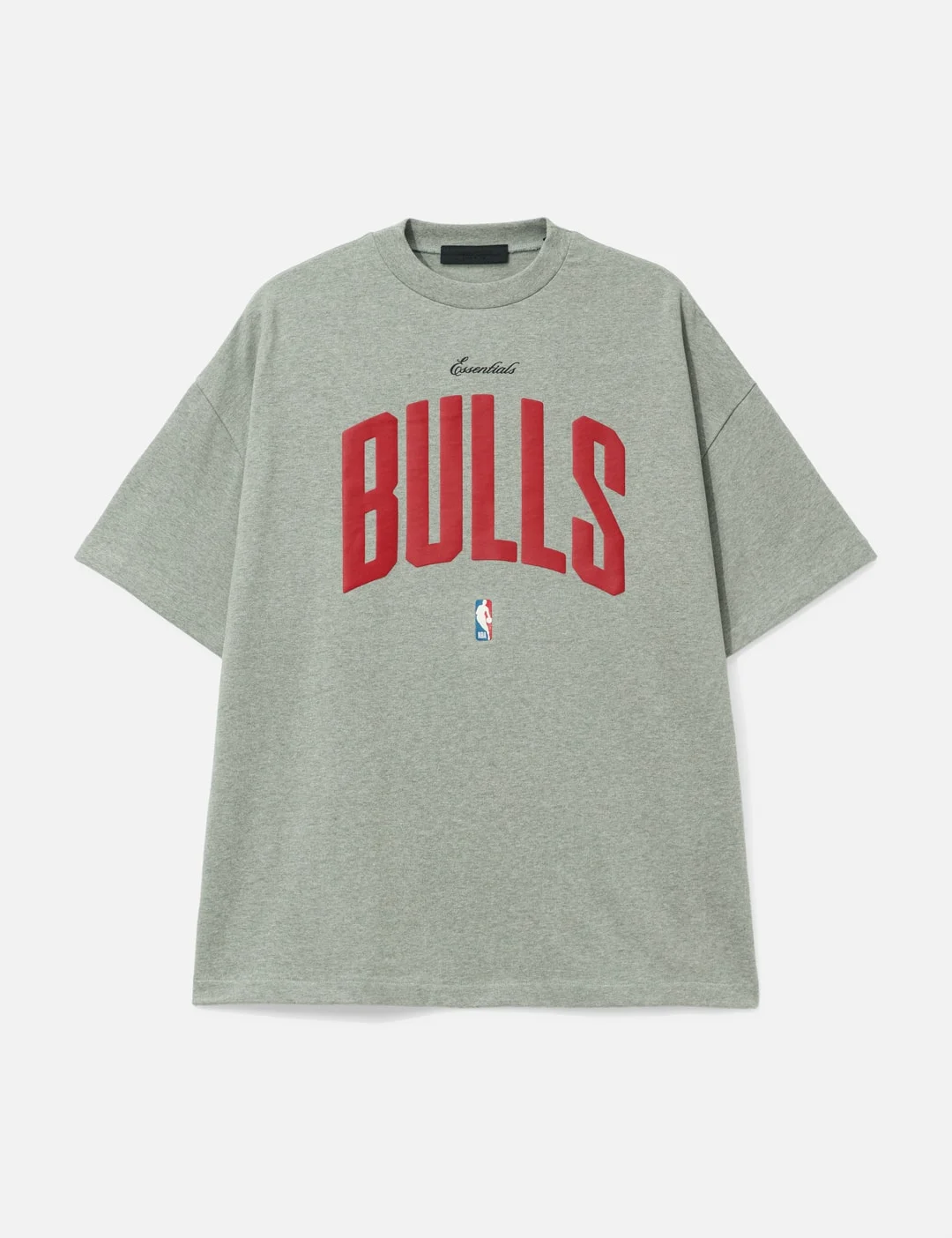 - Fear of God Essentials - Fear of God x NBA Bulls 90's T-Shirt - Fear of God x NBA collaboration - Made of cotton - Ribbed crewneck - Short sleeves - Printed Bulls and NBA essentials logo on front - Rubberized brand label under back collar - Color: Concrete Heather - Material: 100% Cotton - See more SS T-Shirts, T-Shirts and Clothing - Model wears size M - Model measures: Height 186cm, Chest 34”/86cm, Waist 28”/71cm, Hip 36”/91cm - Vendor Code: 125NB252206F
