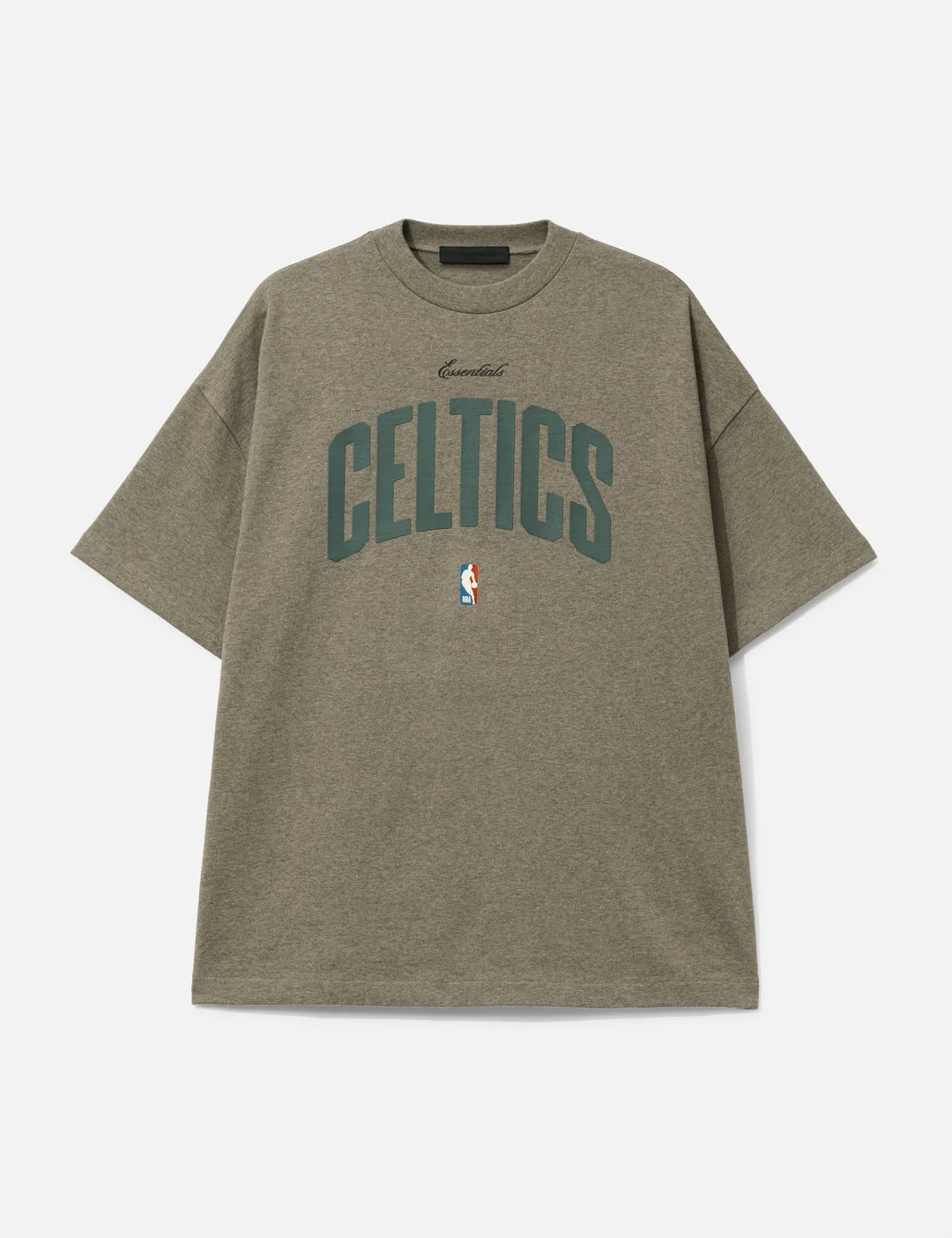 - Fear of God Essentials - Fear of God x NBA Celtics 90's T-Shirt - Fear of God x NBA collaboration - Made of cotton - Ribbed crewneck - Short sleeves - Printed Celtics and NBA essentials logo on front - Rubberized brand label under back collar - Color: Homestead Heather - Material: 100% Cotton - See more SS T-Shirts, T-Shirts and Clothing - Model wears size M - Model measures: Height 186cm, Chest 34”/86cm, Waist 28”/71cm, Hip 36”/91cm - Vendor Code: 125NB252207F