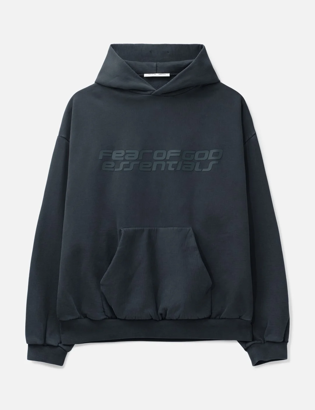 - Fear of God Essentials - Heavy Fleece 90s Hoodie - Oversized fit - Made of 520gsm heavy fleece - Pigment dye - Fixed hood - Dropped shoulders - Ribbed cuffs and hem - HD-printed Fear of God Essentials logo on front - Kangaroo pocket - “26” graphic on the back - Rubberized brand label at back hood - Color: Vintage Black - Material: 100% Cotton - See more Hoodies and Clothing - Model wears size M - Model measures: Height 186cm, Chest 34”/86cm, Waist 28”/71cm, Hip 36”/91cm - Vendor Code: 192HO256564F