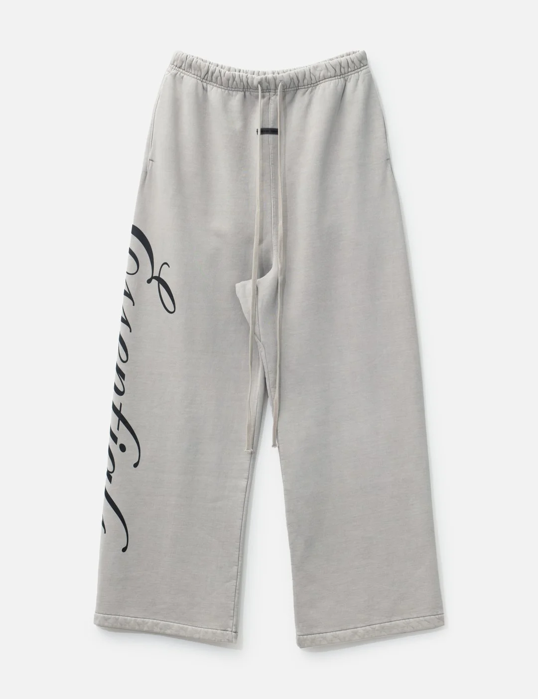 - Fear of God Essentials - Heavy Fleece Lounge Sweatpant - Made of 520gsm heavy fleece - Pigment dye - Wide leg - Encased elastic waistband with elongated drawcords - Rubberized brand label at center front - Two side seam pockets - Printed “Essentials” script logo on the leg - Color: Smoke Grey - Material: 100% Cotton - See more Pants and Clothing - Model wears size M - Model measures: Height 186cm, Chest 34”/86cm, Waist 28”/71cm, Hip 36”/91cm - Vendor Code: 130HO258381F