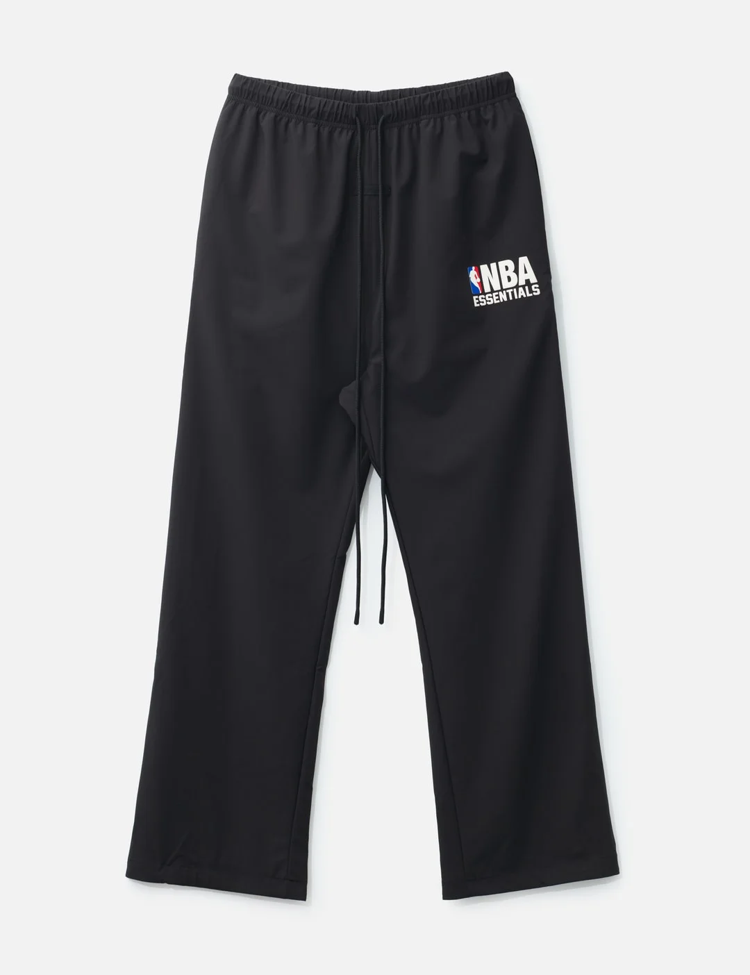 - Fear of God Essentials - Fear of God Essentials x NBA Nylon Tearaway Pant - Fear of God Essentials x NBA collaboration - Lounge fit - Wide leg - Made of nylon and spandex - Encased elastic waistband with heavyweight drawstring - Fear of God label on front - NBA Essentials logo and NBA emblem on thigh - Side seam pockets - Metal zipper and snap closure at side - Color: Black - Material: 84% Nylon, 16% Spandex - See more Pants and Clothing - Model wears size M - Model measures: Height 186cm, Chest 34”/86cm, Waist 28”/71cm, Hip 36”/91cm - Vendor Code: 130NB258201F
