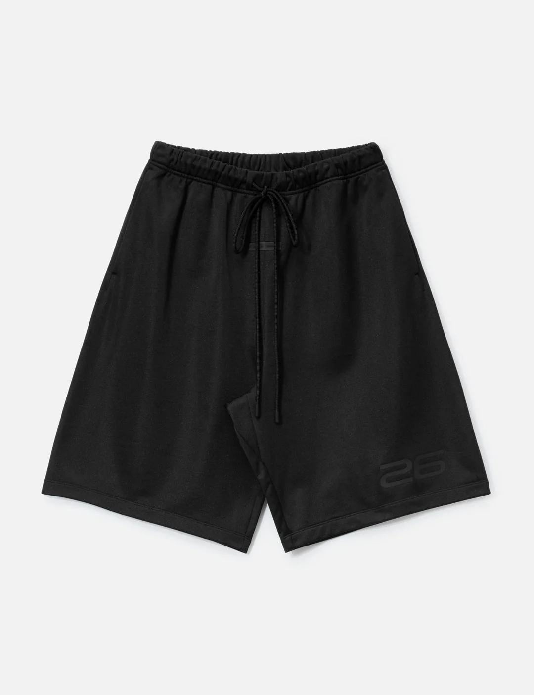 - Fear of God Essentials - Satin Fleece Relaxed Sweatshort - Made of 390gsm satin fleece - Wide leg - Elongated length - Elastic waistband - Heavyweight drawstring - "26" print graphic - Side seam pockets - Fear of god essentials rubberized label at center - Color: Vintage Black - Material: 72% Polyester, 28% Cotton - See more Shorts and Clothing - Model wears size M - Model measures: Height 187cm, Chest 35.4”/90cm, Waist 27”/69cm, Hip 36”/91cm - Vendor Code: 160HO254671F