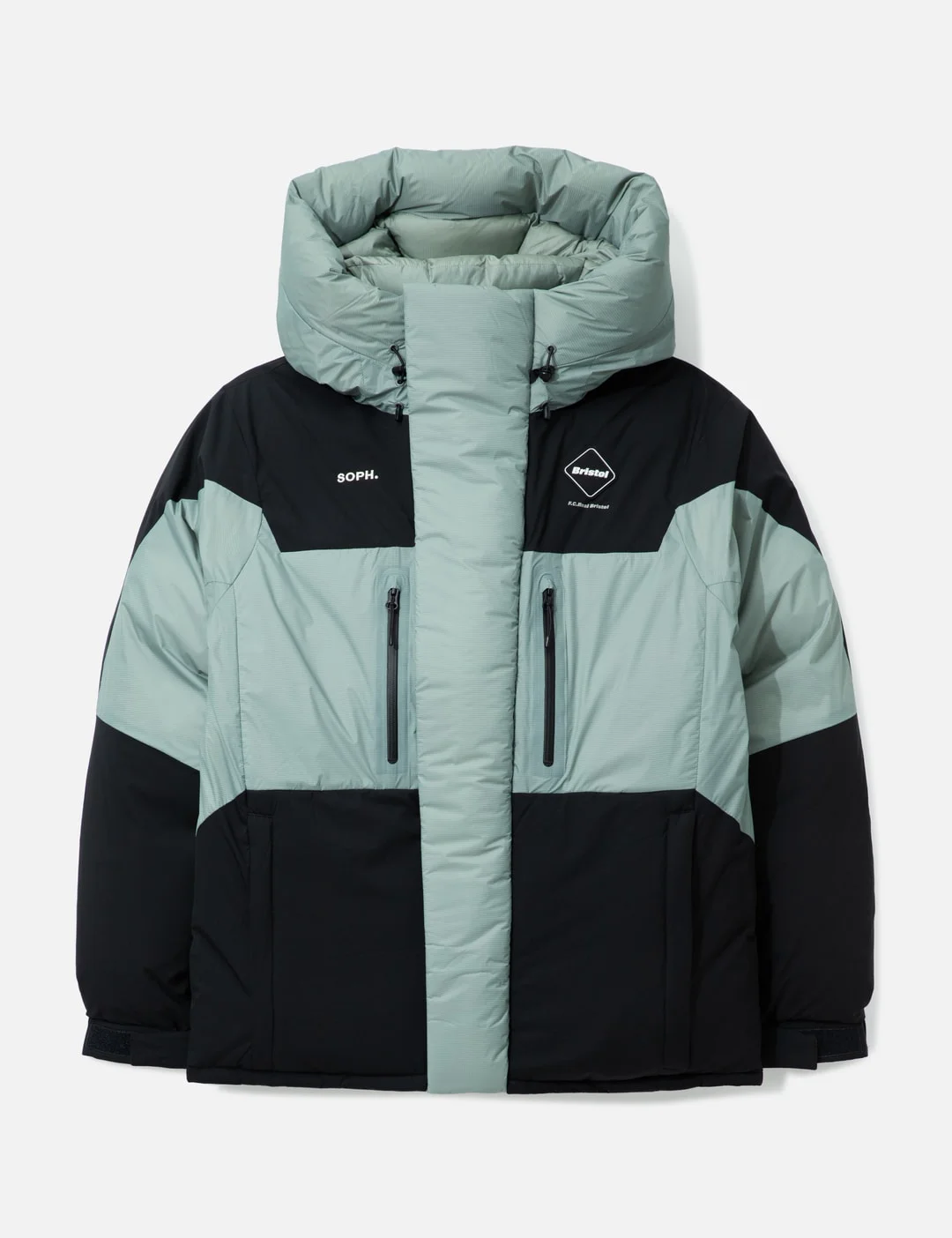 - F.C. Real Bristol - Field Down Parka - Made of nylon - Down-filled - Hood with drawcords - Two-way zipper closure - Velcro at front and cuffs - Embroidered logo at arm and chest - Brand logo patch - Four front zipper pockets - Hem with drawcord - One inner zipper pocket - Color: Sage - Material: Shell: 100% Nylon; Lining: 100% Nylon; Filling: 90% Down, 10% Feather - See more Puffer Jackets, Jackets and Clothing - Model wears size M - Model measures: Height 186cm, Chest 34”/86cm, Waist 28”/71cm, Hip 36”/91cm - Vendor Code: FCRB-252020