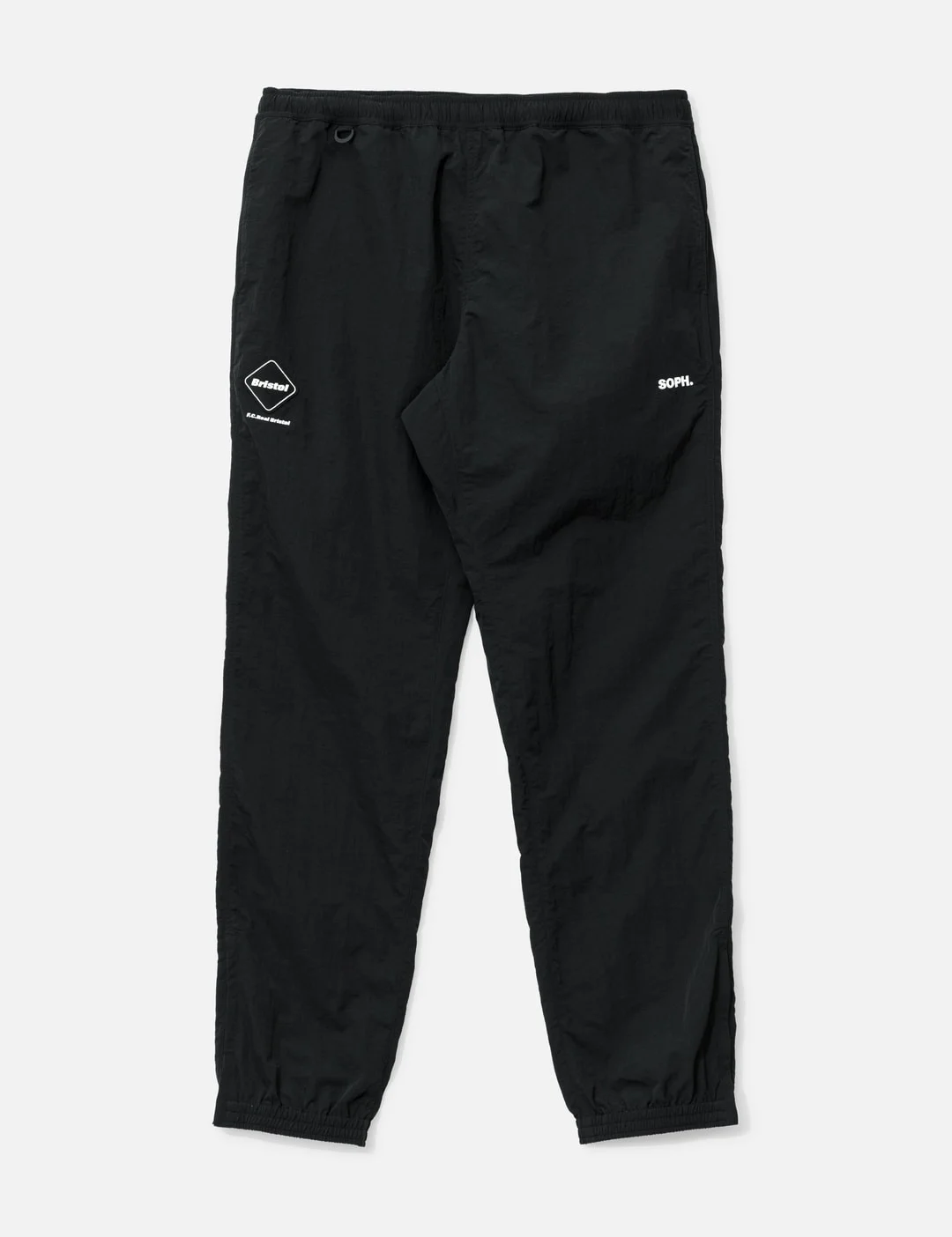 - F.C. Real Bristol - Nylon Easy Pants - Nylon taffeta - Smooth, natural texture - Water repellency - Abrasion resistance - Elastic waistband with drawstring - Two side pockets - Two rear pockets - Logo patches and embroidery on front - Elastic cuffs - Color: Black - Material: 100% Nylon - See more Pants and Clothing - Model wears size L - Model measures: Height 186cm, Chest 34”/86cm, Waist 28”/71cm, Hip 36”/91cm - Vendor Code: FCRB-252052