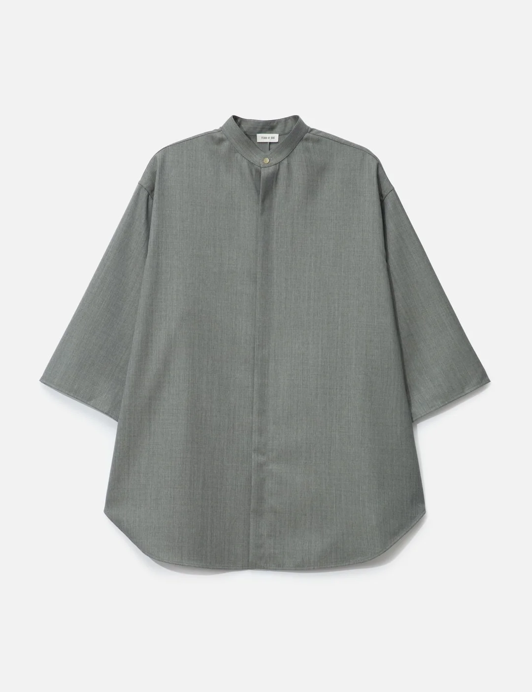 - Fear of God - Band Collar Short Sleeve Shirt - Relaxed fit - Band collar - Horn button closure - Short sleeve - Barrel cuffs - Fear of God tag on back - Made in Italy - Color: Flint Chevron - Material: 100% Virgin Wool - See more Shirts and Clothing - Model wears size M - Model measures: Height 186cm, Chest 34”/86cm, Waist 28”/71cm, Hip 36”/91cm - Vendor Code: FG25FW60-604HWH-292