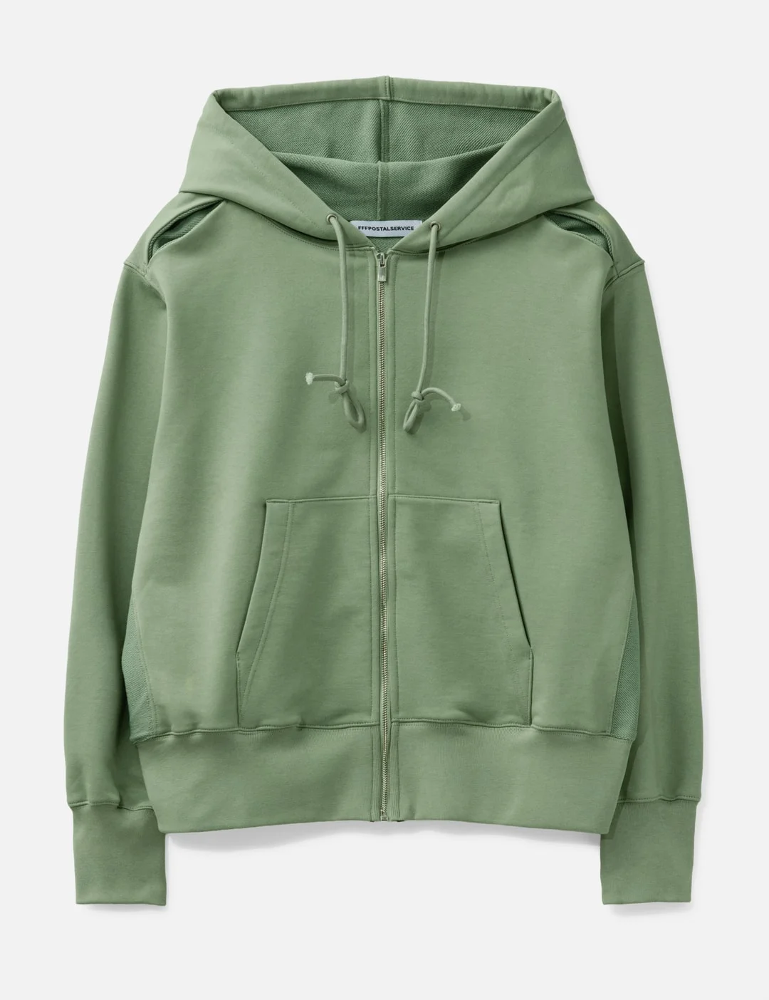- FFFPostalservice - Reverse Round Hem Zip Hoodie - French terry cotton fabric - Hood with drawstring - Slit panels at shoulder - Two side pockets - Round hem - Ribbed cuffs and hem - Made in Korea - Color: Fondant Brown - Material: 100% Cotton - See more Hoodies and Clothing - Model wears size L - Model measures: Height 186cm, Chest 34”/86cm, Waist 28”/71cm, Hip 36”/91cm - Vendor Code: FFFPSFW2529