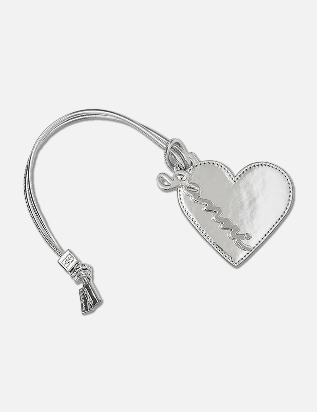 - Ganni - GANNI Bou Heart Mirror - Heart-shaped mirror with logo print - Silver-tone cube and logo plaque - Can be styled as a bag charm - Color: Silver - Material: 50% Recycled Leather, 36% Polyurethane, 14% Polyester - See more Keychains, Jewelry and Accessories - Key Tag - 8 × 8cm - Key Slider: - Length: 24cm - Vendor Code: A7118