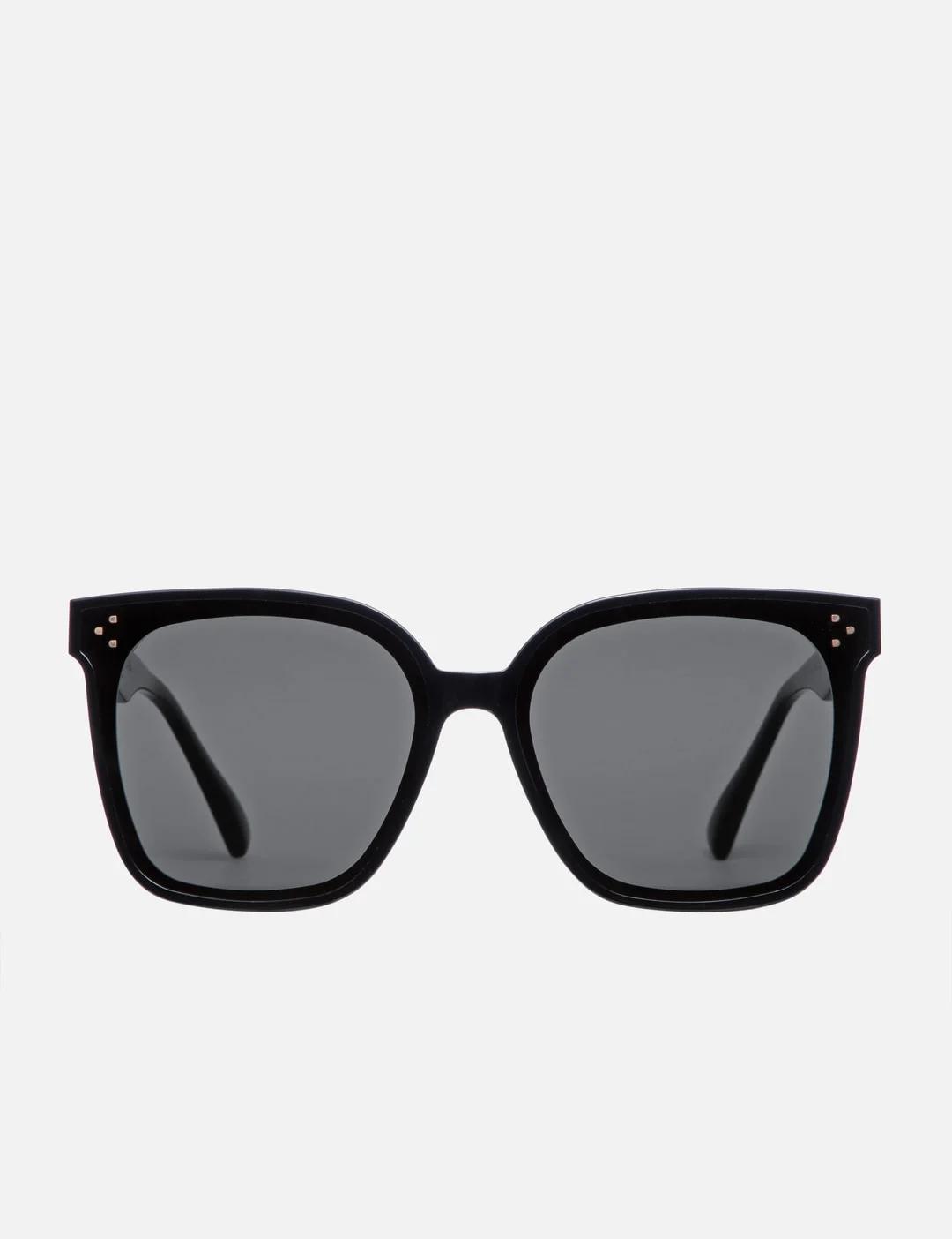 - Gentle Monster - Her 01 - Bullet shaped pin details - Oversized square Flatbar frame - Logo lettering - Color: Black - Material: 100% Acetate - See more Sunglasses, Eyewear and Accessories SIZING Approximate dimensions: - Frame Height: 5.5cm - Frame Width: 14.5cm - 65 15 - 147