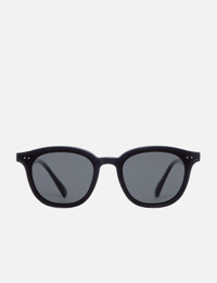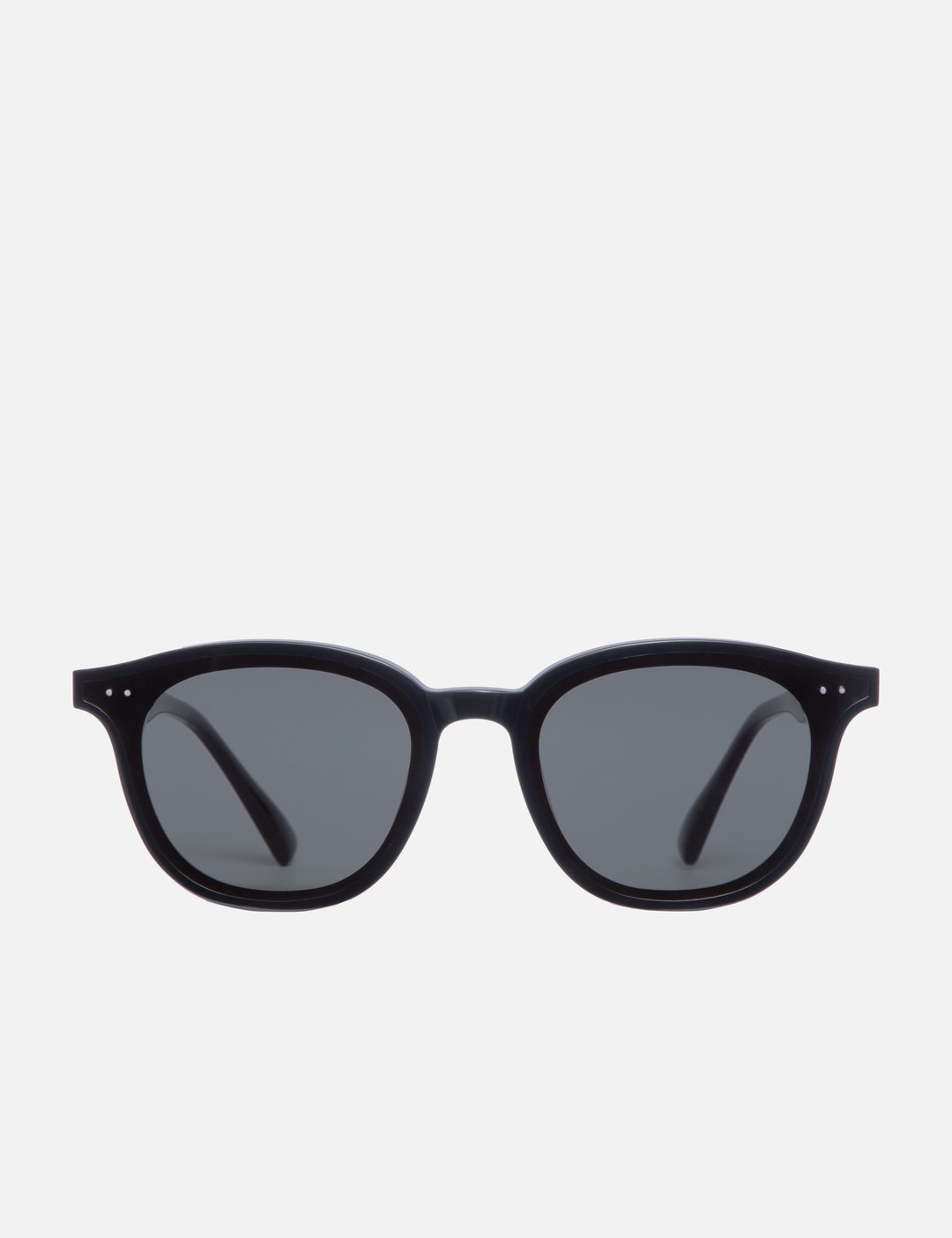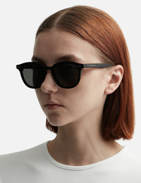 - Gentle Monster - Lang 01 - Round acetate frame - Circular pin details - Logo lettering - Straight arm - Color: Black - Material: 100% Acetate - See more Sunglasses, Eyewear and Accessories SIZING Approximate dimensions: - Frame Height: 5cm - Frame Width: 14.5cm - 65 18 - 147