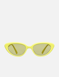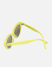 - Gentle Monster - Mondri Y7 - Vibrant yellow-green acetate frame - Cat-eye shaped - Olive lenses - Tonal metal details on the temples - Model and branding engraved on the inner temples - Integrated nose pad - Softly curved temples with flat tips - 99.9% UV protection - Color: Yellow - Material: Acetate - See more Sunglasses, Eyewear and Accessories SIZING Approximate dimensions: - Frame Height: 4.5cm - Frame Width: 15cm - 55 ☐ 20 - 146