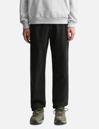 - Gramicci - Gramicci Pants - Organic cotton twill exterior - Elasticated waistband with integrated belt - Zip closure - Gusseted crotch for ease of movement - Two side pockets; two rear welt pockets - Color: Black - Material: 100% Organic Cotton - See more Pants and Clothing SIZING - Model wears size M (Asian Size) - Model measures: Height 190cm, Chest 34”/84cm, Waist 28”/70cm, Hip 35”/90cm