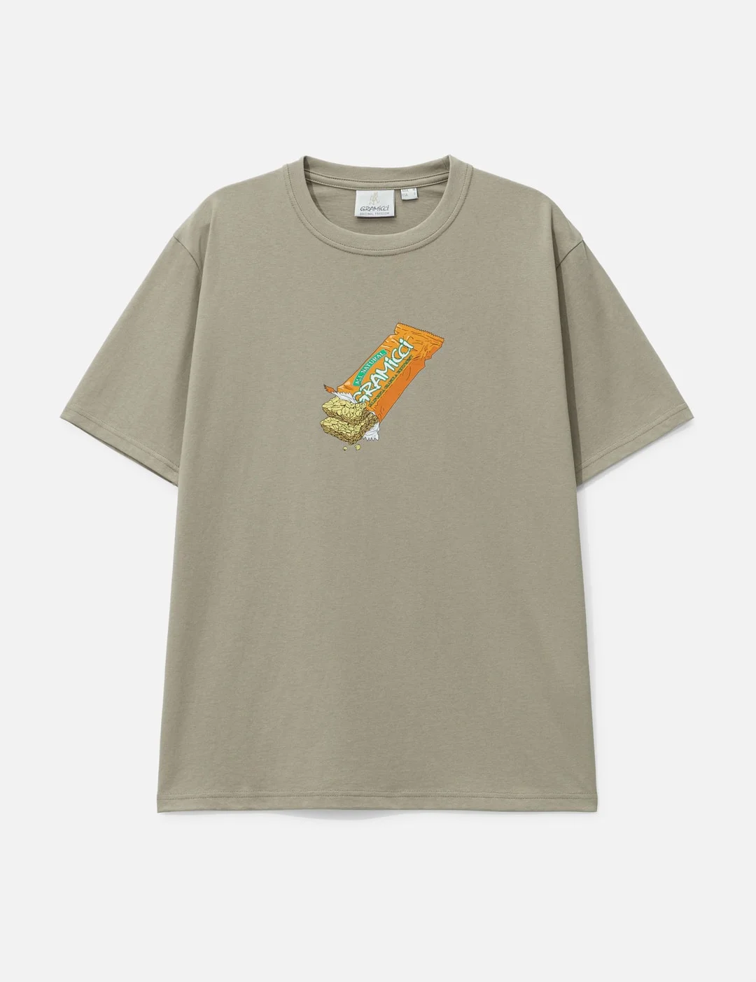 - Gramicci - Granola Tee - Standard fit - Ribbed crewneck - Short sleeves - Graphic with logo printed on front - Double-stitched hem - Color: Beige - Material: 100% Cotton - See more SS T-Shirts, T-Shirts and Clothing - Model wears size M - Model measures: Height 186cm, Chest 34”/86cm, Waist 28”/71cm, Hip 36”/91cm - Vendor Code: G5FU-T080