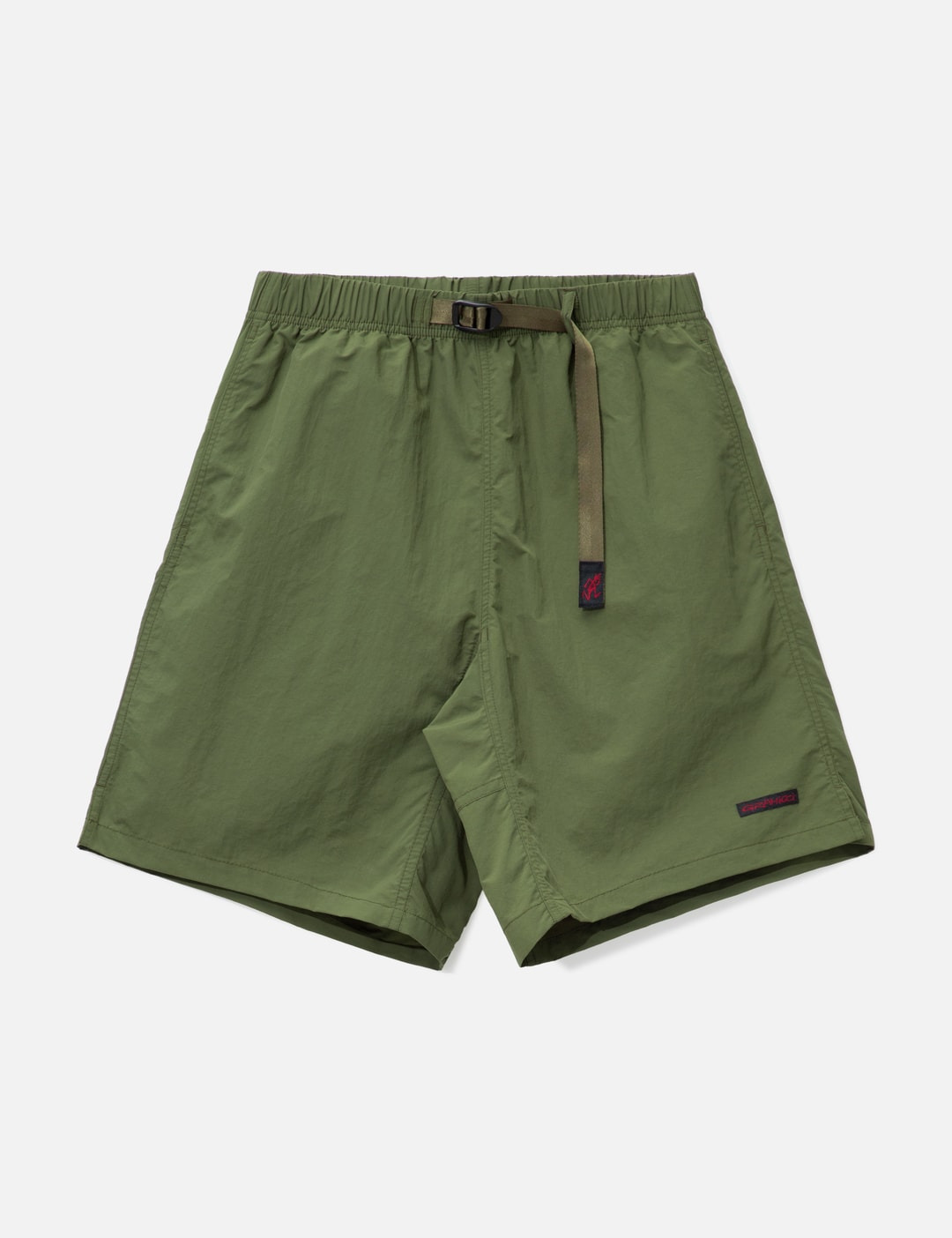 - Gramicci - Nylon Packable G-Short - Relaxed fit - Made of recycled durable nylon - Water-repellent windproof active shell fabric - Chlorine resistant - Elastic waistband with integrated buckled belt - Brand label at belt tip and hem - Zip fly - Gusseted crotch seam - Two front pockets - One back zipper pocket - Color: Olive - Material: 100% Nylon - See more Shorts and Clothing - Model wears size M - Model measures: Height 186cm, Chest 34”/86cm, Waist 28”/71cm, Hip 36”/91cm - Vendor Code: G6SM-P082