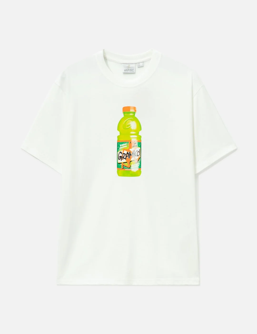 - Gramicci - Quencher T-Shirt - Regular fit - Made of cotton - Ribbed crewneck - Short sleeves - Quencher graphic print on front - Color: White - Material: 100% Cotton - See more SS T-Shirts, T-Shirts and Clothing - Model wears size M - Model measures: Height 186cm, Chest 34”/86cm, Waist 28”/71cm, Hip 36”/91cm - Vendor Code: G6SU-T111