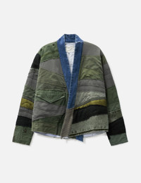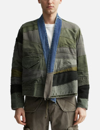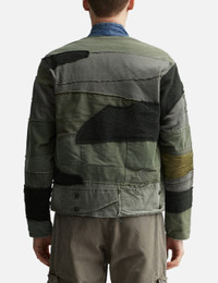 - GREG LAUREN - Mixed Army Cropped GL1 - Patchwork design - Relaxed fit - Triangular flap pocket - Denim collar that extends to its placket - Strips of mixed materials - Made in USA - Color : Army - Material: 55% Cotton, 40% Wool, 5% Nylon - See more Jackets and Clothing SIZING - Model wears size 2 - Model measures: Height 186cm, Chest 35”/89cm, Waist 30.5”/78cm, Hip 35.5”/91cm