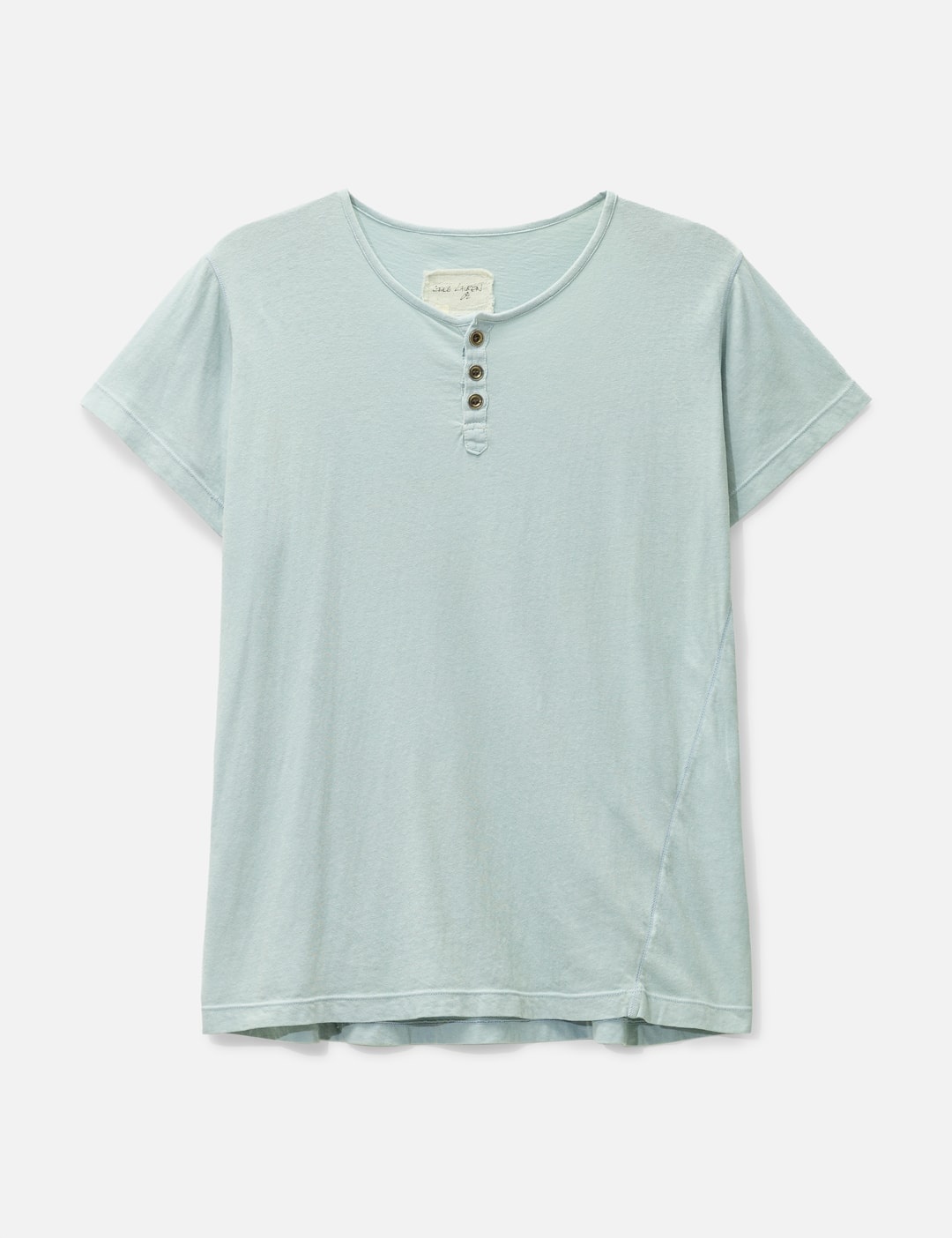 - GREG LAUREN - Short Sleeve Henley - Relaxed fit - Buttoned plaket - Three buttons at the collar - Color: Ice - Material: 100% Cotton - See more T-Shirts and Clothing SIZING - Model wears size 2 - Model measures: Height 186cm, Chest 35”/89cm, Waist 30.5”/78cm, Hip 35.5”/91cm