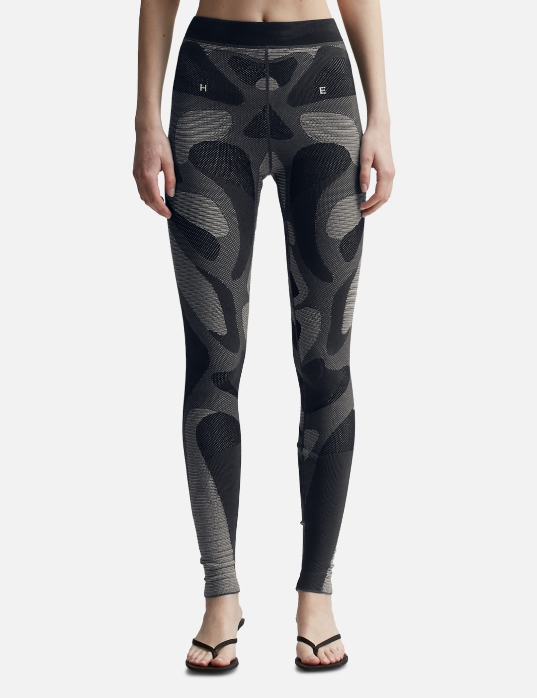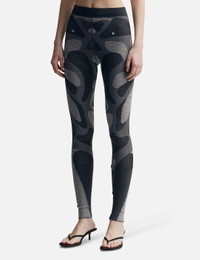 - Heliot Emil - Deform Pants - Compression knit construction - Slim fit - Nylon and spandex blend yarn - All-over biological contrast pattern - Color: Black - Material: 88% Nylon, 12% Spandex - See more Pants and Clothing