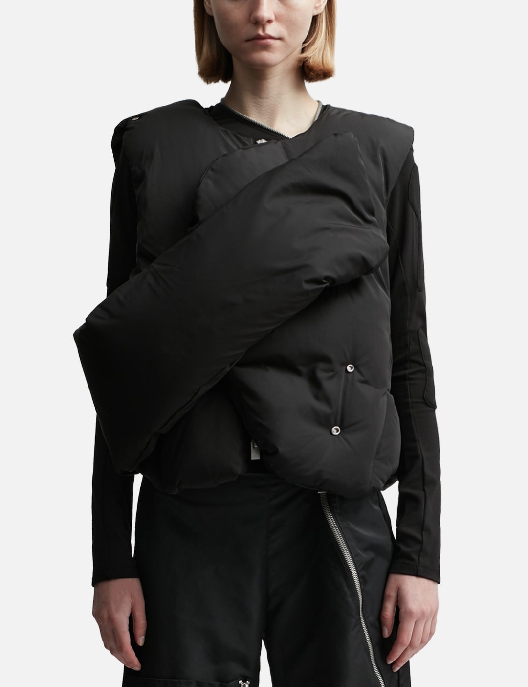 - Heliot Emil - Hollowing Vest - Cropped fit - Double zip closure - Padded - Curved quilting lines - Asymmetric overlay - Press buttons detail allows for customisable styling variations - Color: Black - Material: 100% Nylon - See more Vests and Clothing