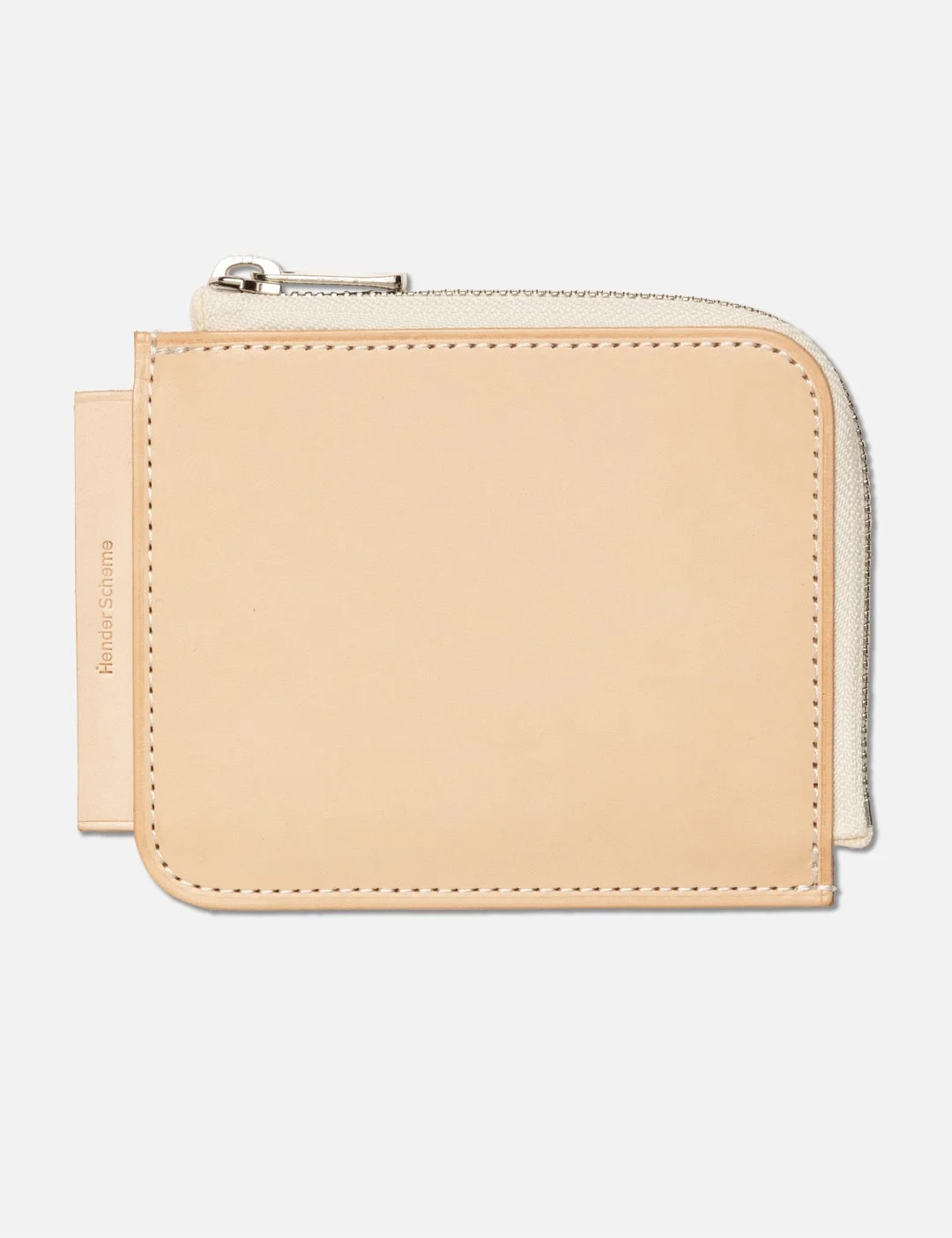 - Hender Scheme - L Purse - Made of cow leather - Zipper closure - Leather brand tag on side - Coin pocket - One bill sleeve - Two slits for cards - Comes with dust bag - Made in Japan - Color: Natural - Material: Cow Leather - See more Wallets and Accessories - Width: 10cm - Length: 11cm - Vendor Code: FU-RC-LPS