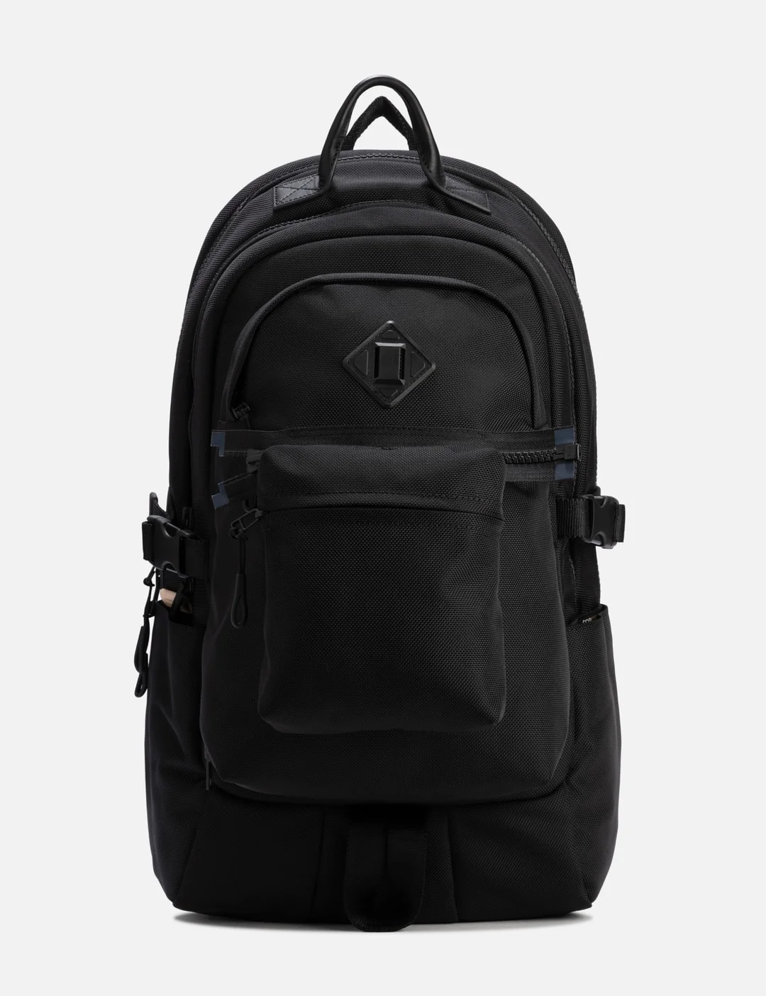 - Hender Scheme - Module Back Pack 26L - Top handle and adjustable shoulder strap - Zipper closure - Vegetable tanned leather brand tag at side - Two main compartments - Two detachable front pockets - Leather brand tag on the inside - Color: Black/Black - Material: 100% Nylon; Cow Leather; Tape: Polyester - See more Backpacks, Bags and Accessories - Height: 52cm - Width: 29cm - Depth: 15cm - Handle Length: 7cm - Vendor Code: XU-B-MBP