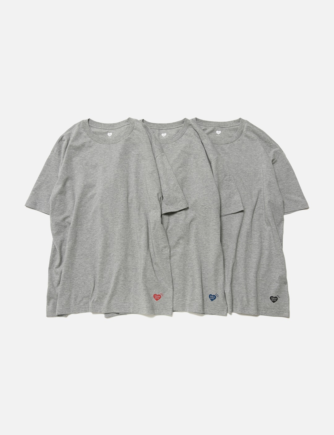 - Human Made - 3-Pack T-shirt Set - Set of three t-shirts - Crewneck - Heart logo print in different colors above hem - Straight hem - Color: Gray - Material: 100% Cotton - See more SS T-Shirts, T-Shirts and Clothing