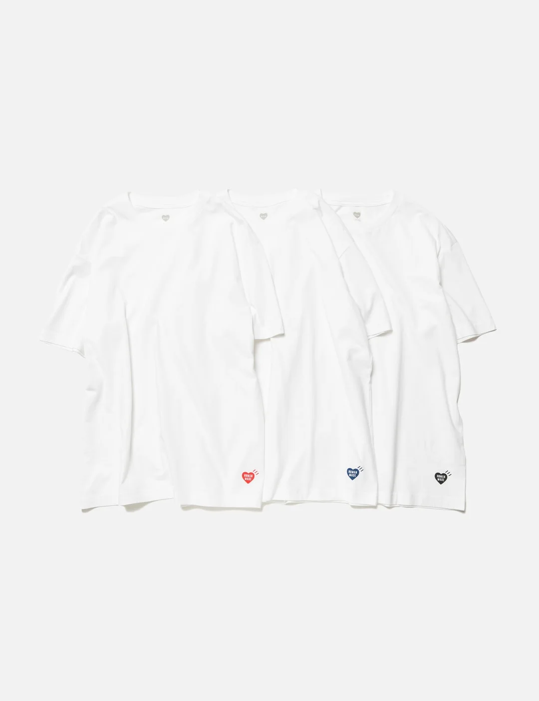 - Human Made - 3-pack T-shirt Set - Set of three t-shirts - Crewneck - Short sleeves - Heart logo print in different colors above hem - Straight hem - Color: White - Material: 100% Cotton - See more SS T-Shirts, T-Shirts and Clothing - Vendor Code: HM30CS037