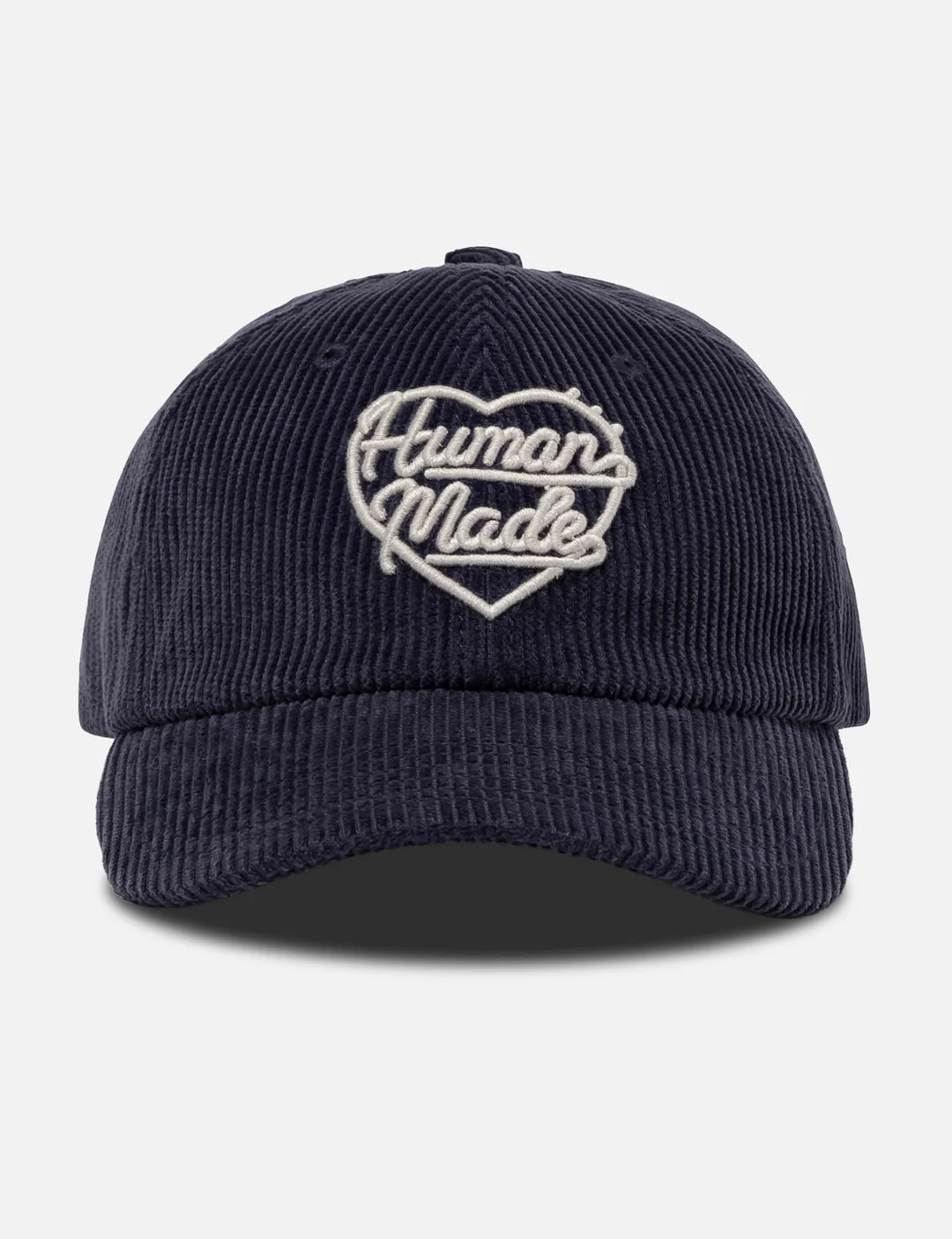 - Human Made - 6 Panel Corduroy Cap - 6-panel cap - Made of cotton corduroy with textured stripes - Three-dimensional heart embroidery on front - Cruved brim - Adjustable strap at the back - Color: Navy - Material: 100% Cotton - See more Caps, Hats and Accessories - Brim Width: 7cm - Crown Height: 12cm - Circumference: 60cm - Vendor Code: HM30GD071