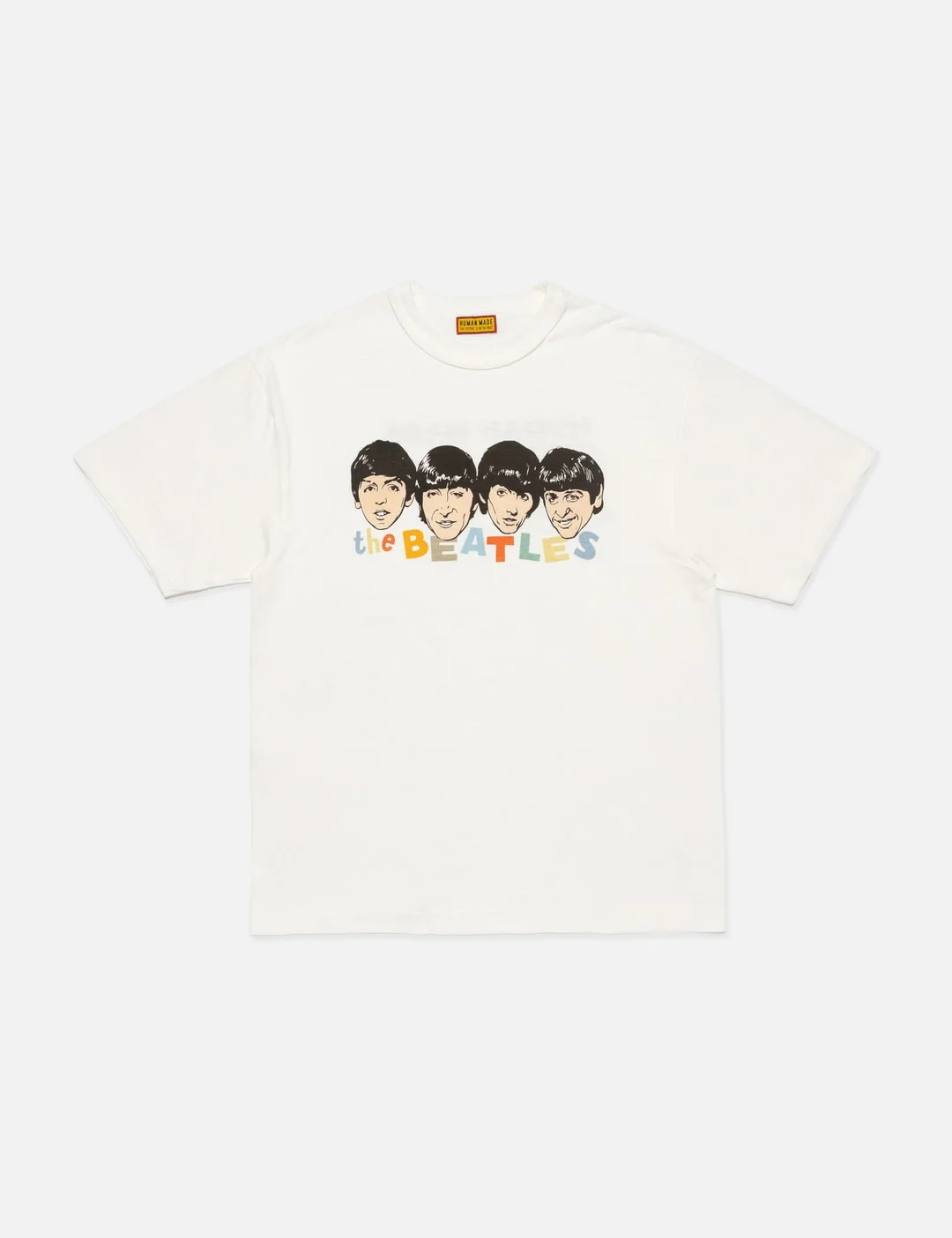 - Human Made - Beatles T-Shirt - Made from HUMAN MADE’s standard slub yarn - Standard fit - Double-binder neckline - Short sleeves - The Beatles graphic printed on front - Back graphic featuring elements of HUMAN MADE and The Beatles - Straight hem - Made in Japan - Color: White - Material: 100% Cotton - See more SS T-Shirts, T-Shirts and Clothing - Vendor Code: HM30TE001