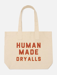 - Human Made - Canvas Tote Bag - Lightweight cotton fabric - Logo print at front - Small logo patch at rear - Open top - One main compartment - Two exterior pockets at rear - Color: White - Material: 100% Cotton - See more Tote Bags, Bags and Accessories SIZING Approximate dimensions: - Height: 40cm - Width: 54cm - Depth: 10cm - Strap Length: 32cm