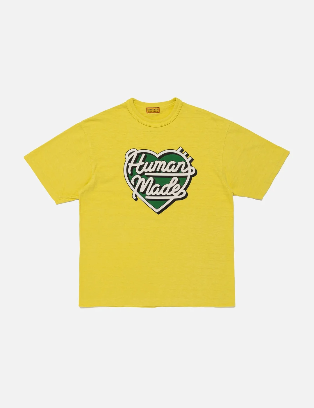 - Human Made - Color T-shirt - Made of HUMAN MADE’s standard slub yarn - Crewneck - Double binder neck design - Short sleeve - Rounded body with no seams - Graphic logo print at front - Logo print on back yoke - Straight hem - Color: Yellow - Material: 100% Cotton - See more SS T-Shirts, T-Shirts and Clothing - Vendor Code: HM29CS032