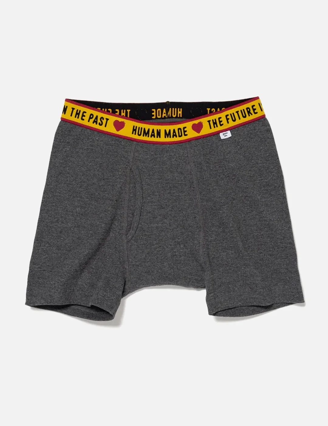 - Human Made - HM Boxer Brief - Made from soft, comfortable cotton blend - Stretchy elastic waistband - Jacquard message - “Gears for” tag under waistband - Color: Charcoal - Material: 98% Cotton, 2% Spandex; Waist Part: 64% Nylon, 29% Polyester, 7% Spandex - See more Underwear and Accessories - Vendor Code: HM00GD003