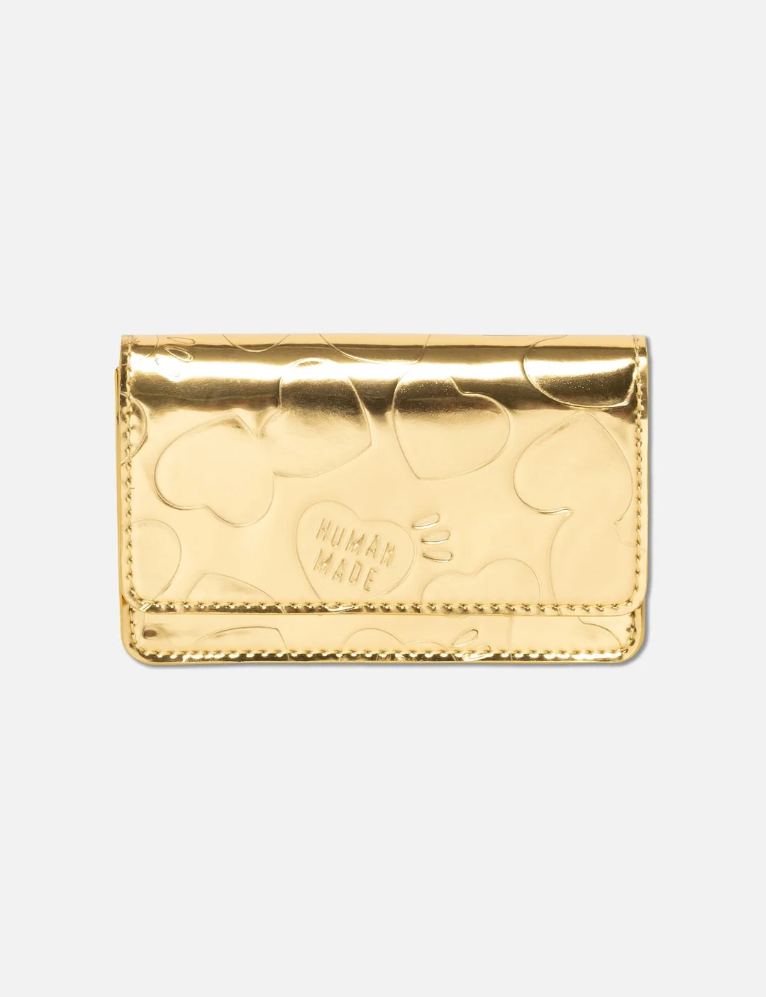 - Human Made - Leather Card Case - Made of natural leather - Bi-fold design - Embossed heart motif throughout - Four card slots - Die-cut heart window on the interior - Color: Gold - Material: 100% Cow Leather - See more Card Holders, Wallets and Accessories - Height: 5.5cm - Width: 10cm - Depth: 1.5cm - Vendor Code: HM30GD031