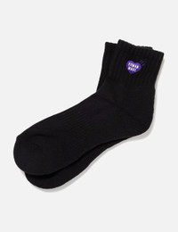 - Human Made - Pile Short Socks - Plush knit fabric - Ribbed cuffs - Heart logo patch at cuff - Color: Black - Material: 57% Cotton, 25% Acrylic, 8% Polyester, 8% Nylon, 2% Spandex - See more Socks and Accessories SIZING Approximate measurement: - Size M - CM (23-25) - Size L - CM (25-27)
