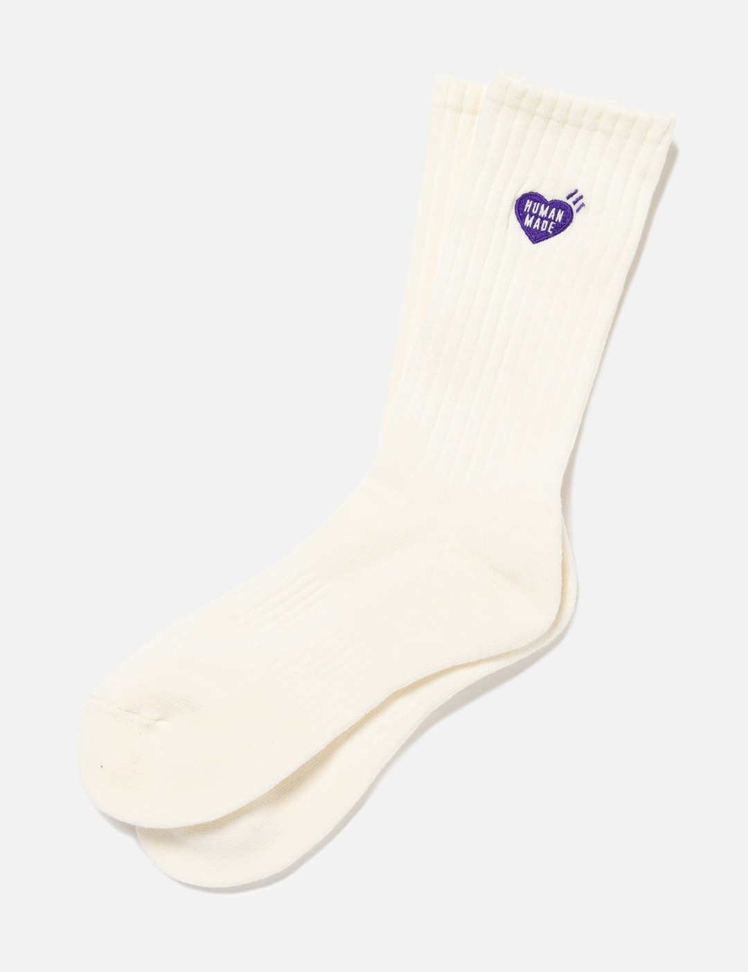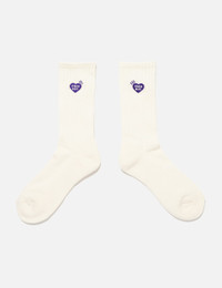 - Human Made - Pile Socks - Plush knit fabric - Ribbed cuffs - Heart logo patch at cuff - Color: White - Material: 57% Cotton, 25% Acrylic, 8% Polyester, 8% Nylon, 2% Spandex - See more Socks and Accessories SIZING Approximate measurement: - Size M - CM (23-25) - Size L - CM (25-27)