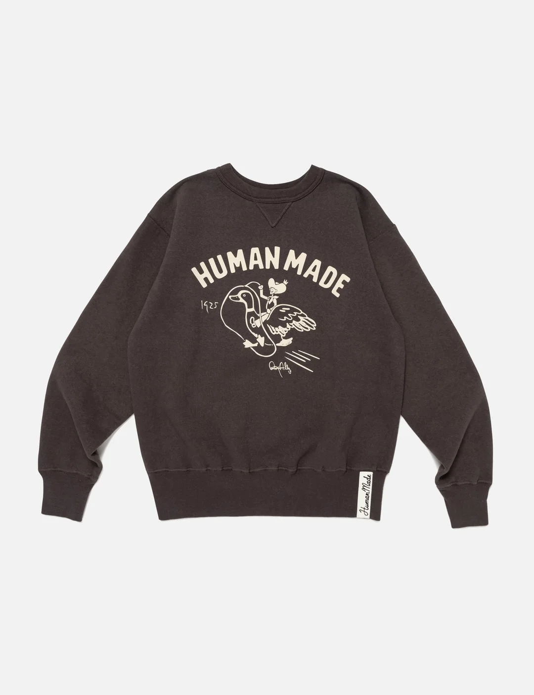 - Human Made - Tsuriami Sweatshirt - Made of soft brushed fleece - Standard fit - Vintage-inspired design - Crewneck - V-shaped gusset - Graphic print on the front and back - Ribbed neck, cuffs and hem - Felt patch logo at hem - Slight size and texture variations are inherent to the washing process - Made in Japan - Color: Charcoal - Material: 100% Cotton - See more Sweatshirts and Clothing - Vendor Code: HM30CS029