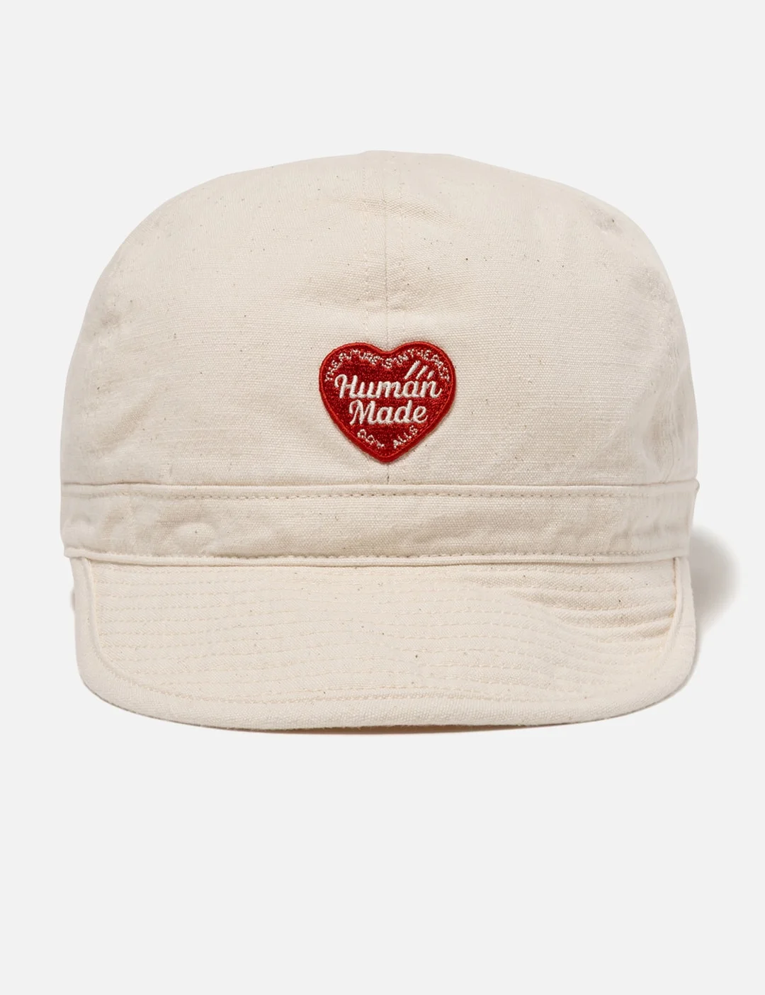 - Human Made - Work Cap - Made of cotton canvas - Vintage-inspired design - 6-panel construction - Heart logo patch on front - Enhanced stitching on brim - Non-adjustable - Slight size and texture variations are inherent to the washing process - Made in Japan - Color: White - Material: 100% Cotton - See more Caps, Hats and Accessories - Size M - Brim Width: 6cm - Crown Height: 14cm - Circumference: 60cm - Size L - Brim Width: 6cm - Crown Height: 14cm - Circumference: 62cm - Vendor Code: HM30GD003