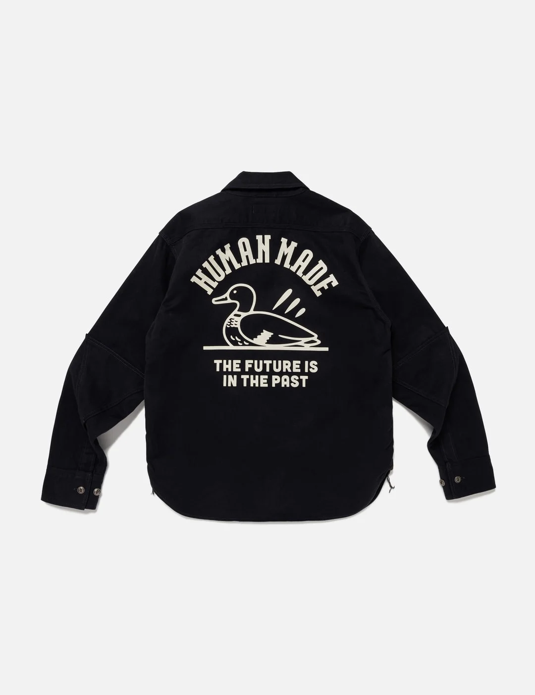 - Human Made - Work Shirt - Made of double-sided brushed cotton twill - Regular fit - Standard collar - Front button closure - Two front flap pockets - Signature heart logo patch on the left chest pocket - Chain-stitched logo above the right chest pocket - Rubber printed graphic at back - Tonal elbow patches - Buttoned cuffs - Curved hem - Gusset and frayed detail at side slits - Color: Navy - Material: 100% Cotton - See more Shirts and Clothing - Vendor Code: HM30SH004