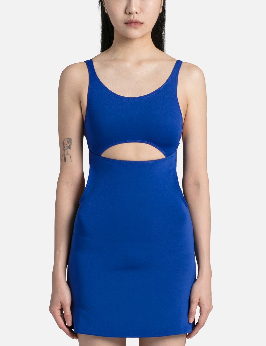 - Hyein Seo - Sport Knit Dress - Lightweight stretch poly fabric - Sleeveless - Scoop neck - Cut-out details at waist - Mini-length - Unlined - Color: Royal Blue - Material: 90% Polyester, 10% Spandex - See more Dresses and Clothing SIZING - Model wears size 0 - Model measures: Height 170cm, Chest 29”/75cm, Waist 22”/57cm, Hip 33”/86cm