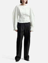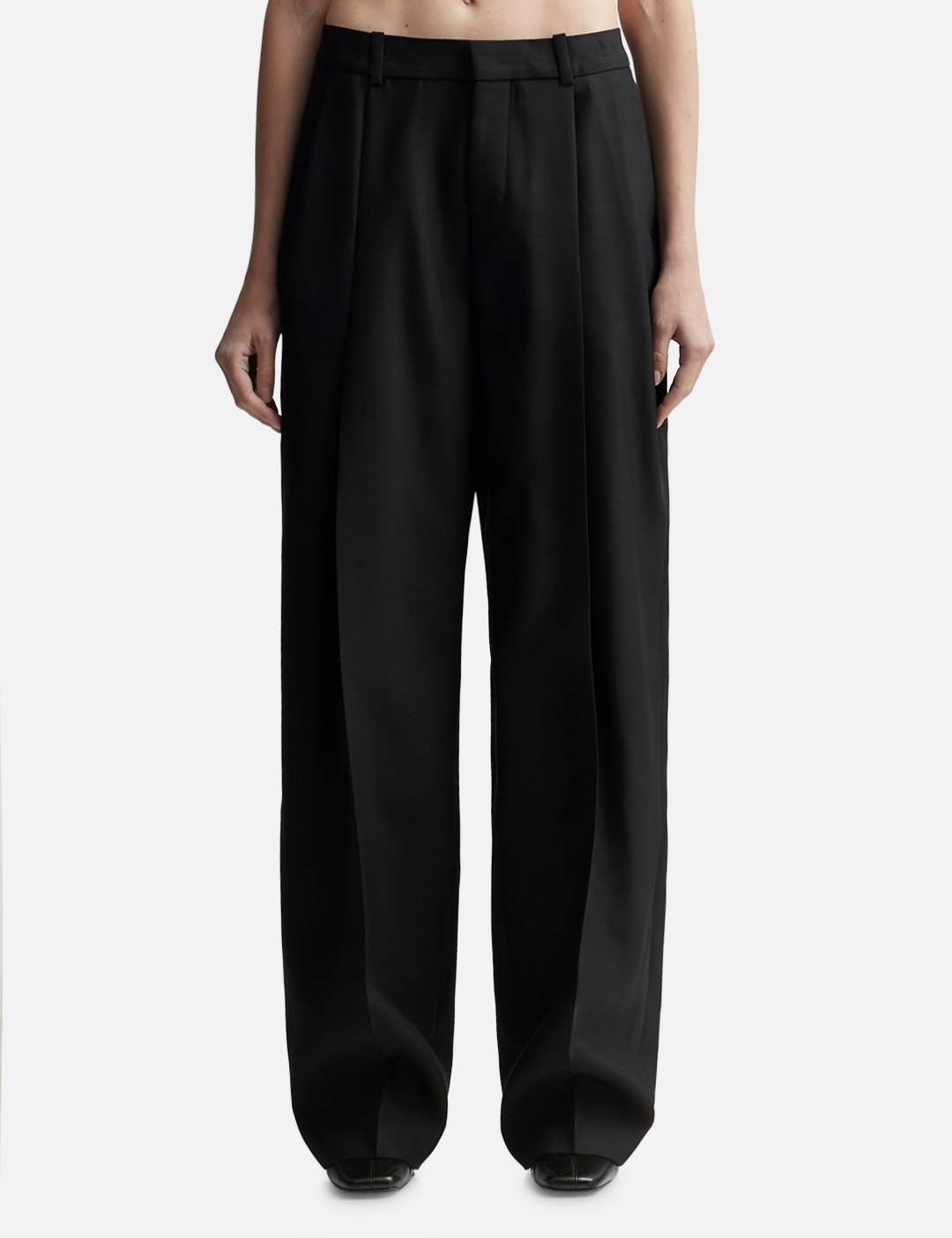- Jacquemus - Le Pantalon Curzio - Mid-rise - Belt loops - Zip-fly - Classic four-pocket style - Creased legs - Color: Black - Material: 71% Virgin Vool, 29% Silk; Lining: 97% Cotton, 3% Elastane - See more Pants and Clothing SIZING - Model wears size S - Model measures: Height 177cm, Chest 32”/81cm, Waist 23.5”/59.7cm, Hip 33’’/83.8cm