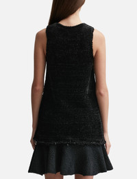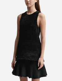 - Jil Sander - Frayed Velvet Knitted Tank Top - Knit construction - Slim fit - Crewneck - Sleeveless - Frayed trim - Color: Black - Material: 69% Silk, 31% Cotton - See more Tanks and Clothing SIZING - Model wears size 34 - Model measures: Height 175cm, Chest 33”/83.8cm, Waist 23”/58.4cm,Hip 34”86.4cm