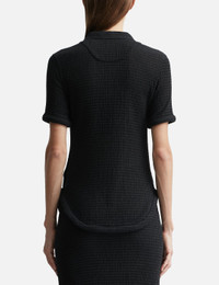 - Jil Sander - Polo Shirt - Cotton jersey gaufre exterior - Slim fit - Polo collar - Quarter zip closure - Short sleeves - Curved hem - Color: Black - Material: 69% Polyester, 30% Cotton, 1% Elastane - See more Shirts and Clothing - Vendor Code: J02GL0101J74450001 - Model wears size 34 - Model measures: Height 180cm, Chest 32.6”/83cm, Waist 23.2”/59cm, Hip 35”89cm
