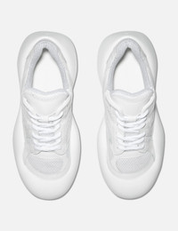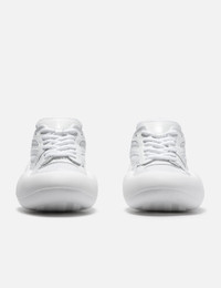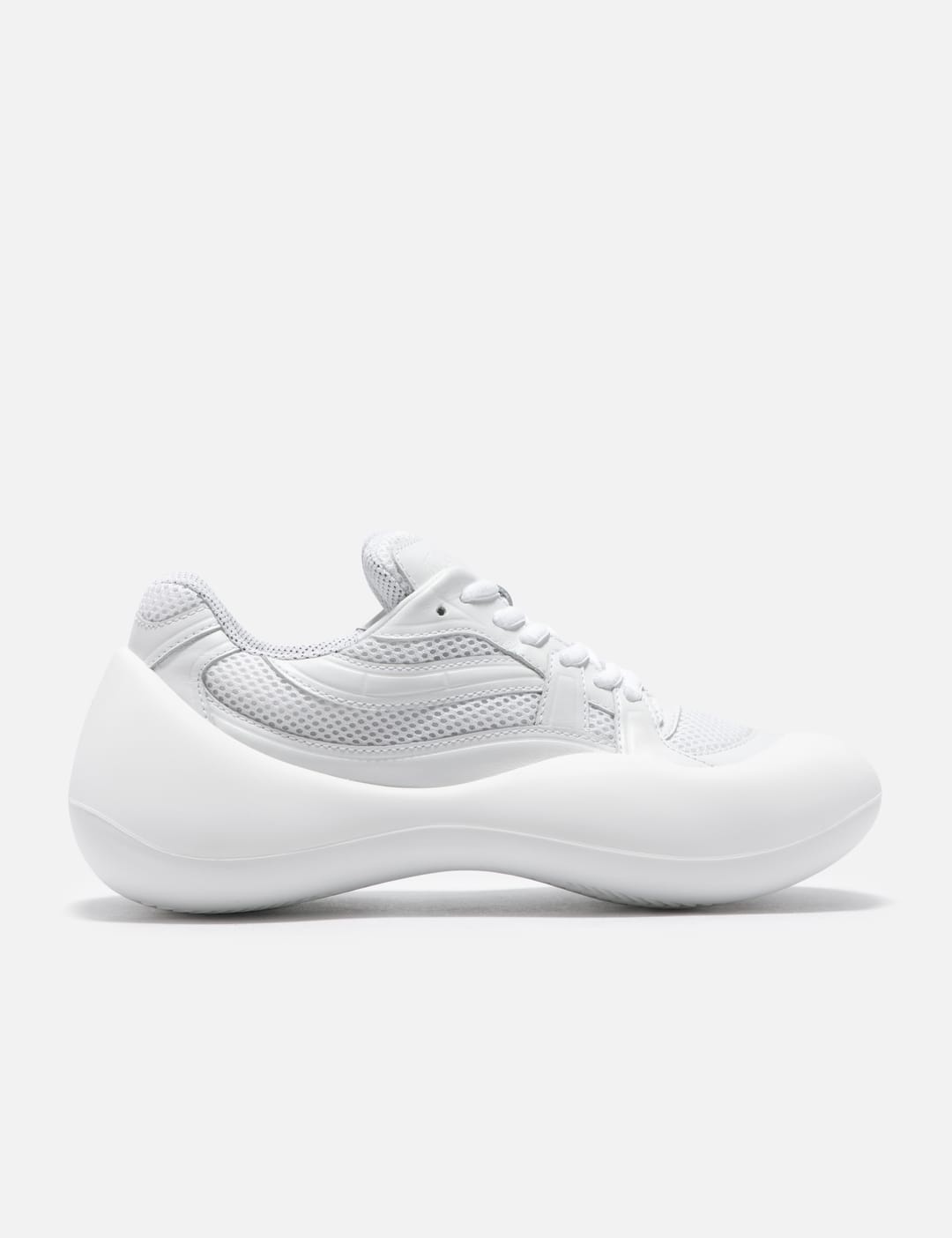 - JW Anderson - Bumper-hike Low Top Sneakers - Mesh upper with leather overlays - Lace-up closure - Exageratted toe cap - Padded collar and tongue - Branded tongue and heel - Chunky rubber outsole - Color: White - Material: 70% Full Grain Calf Leather, 30% Polyester; 100% Rubber - See more Sneakers and Shoes