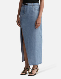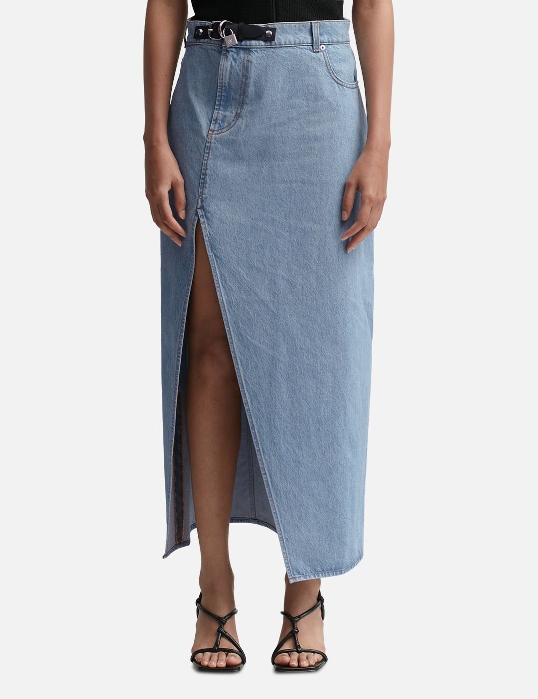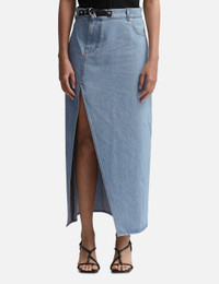 PADLOCK STRAP LONG SLIT DENIM SKIRT