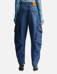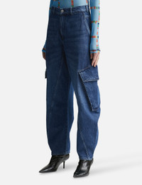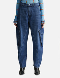 - JW Anderson - Twisted Cargo Denim Jeans - Tapered-leg cargo trousers - Garment dyed - Curved seams - Two large front patch pockets - Two side pockets - Two back welt pockets - Pecan logo embossed leather patch - Color: Blue - Material: 100% Cotton - See more Jeans and Clothing SIZING - Model wears size 26 - Model measures: Height 177cm, Chest 32”/81cm, Waist 23.5”/59.7cm, Hip 33’’/83.8cm